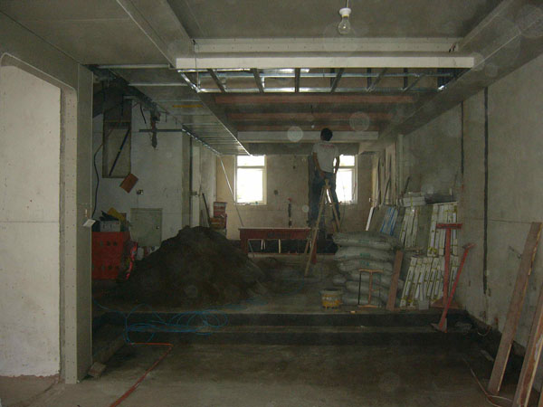 用石膏板修正原不规整的顶面,留一公分的凹槽起装饰作用