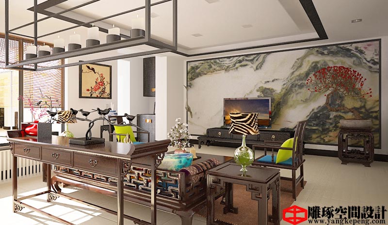 整体思路如下:因为家具已经锁定为中式红木,中式红木家具给人的印象是厚重,凝重,“沉闷”,所以在设计时出发点为,怎样让厚重“沉闷”的中式红木家具焕发青春活力?怎样让传统红木家具更好的和现代生活习惯相结合?