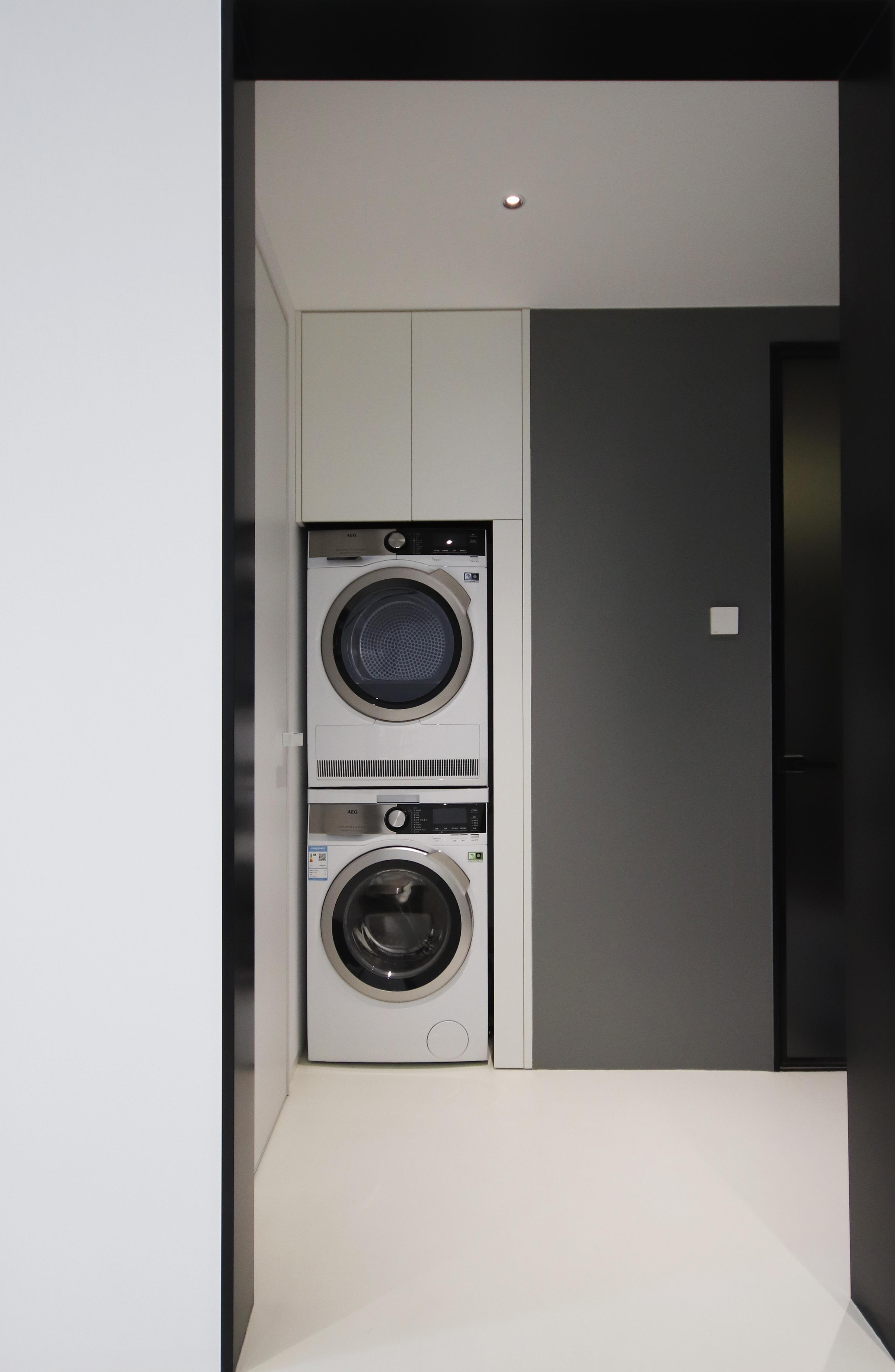 二层的功能主要以看书观影为主,错落有致的书架简洁灵动,为使用者提供了舒适的放松空间;中央空调的出风和回风隐藏在新建墙体内,与书柜结合起来设计,最大限度的保证了空间界面的整体感和美观;